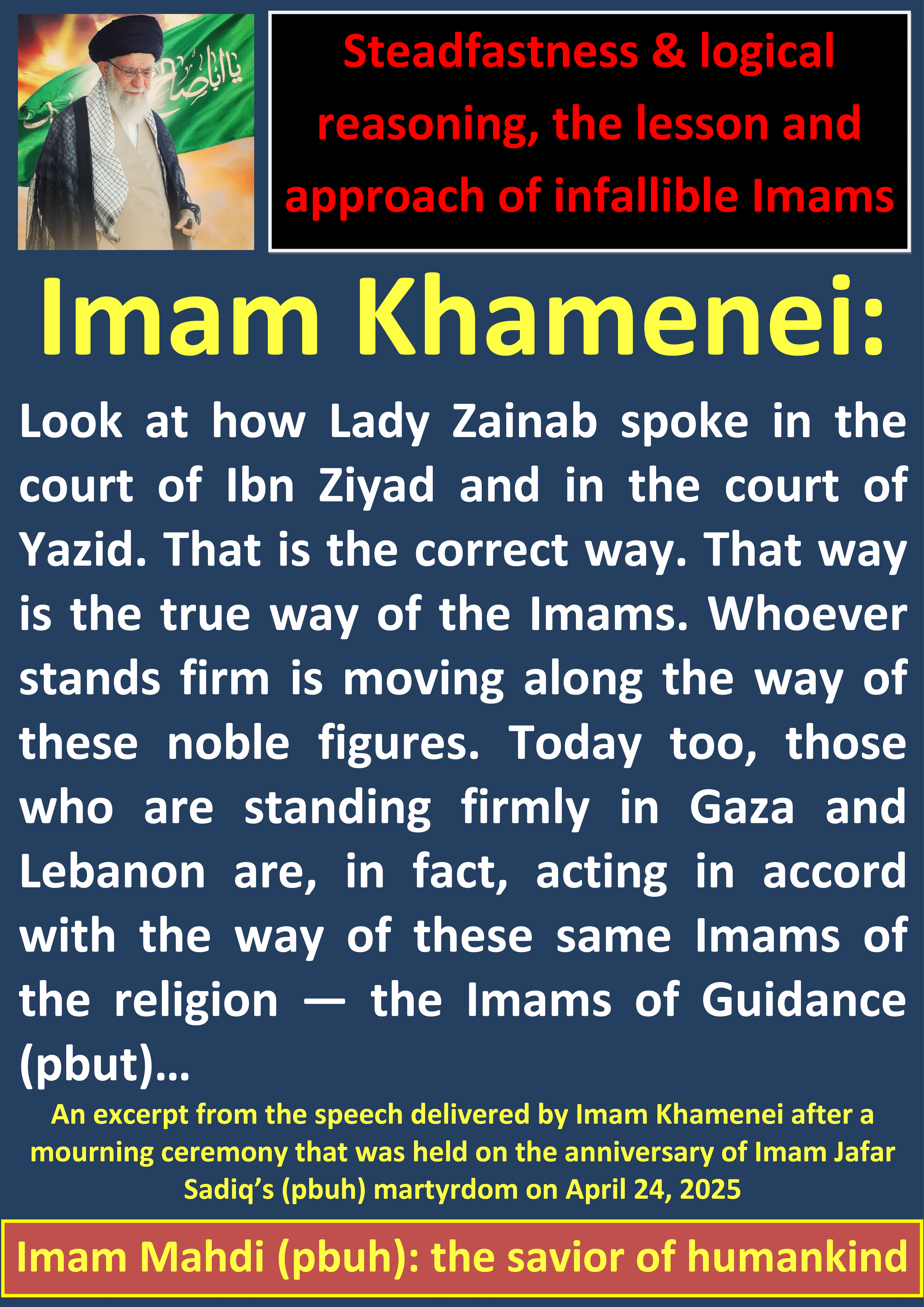 An excerpt from the speech delivered by Imam Khamenei after a mourning ceremony that was held on the anniversary of Imam Jafar Sadiq’s (pbuh) martyrdom on April 24, 2025